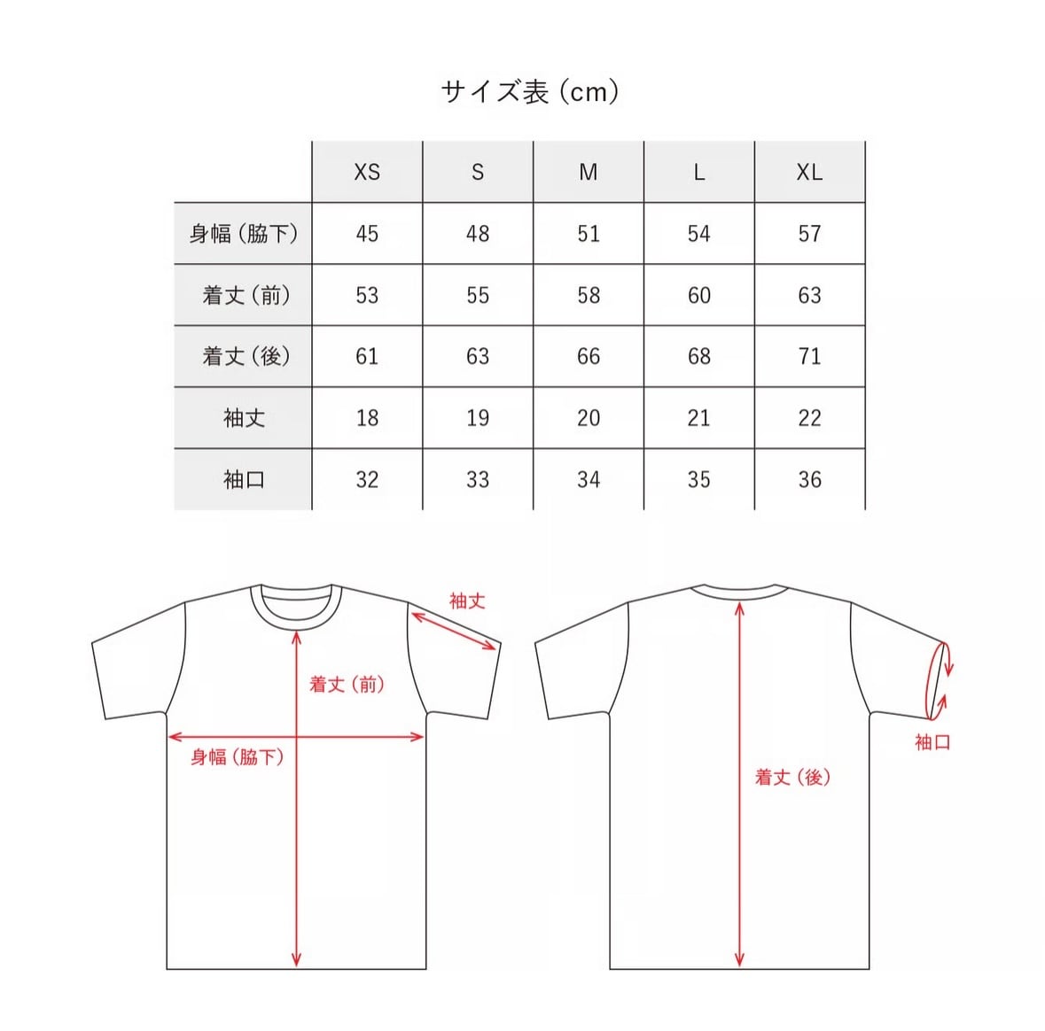 Lサイズ/身幅(脇下):54cm、着丈(前):60cm、着丈(後):68cm、袖丈:21cm、袖口:35cm