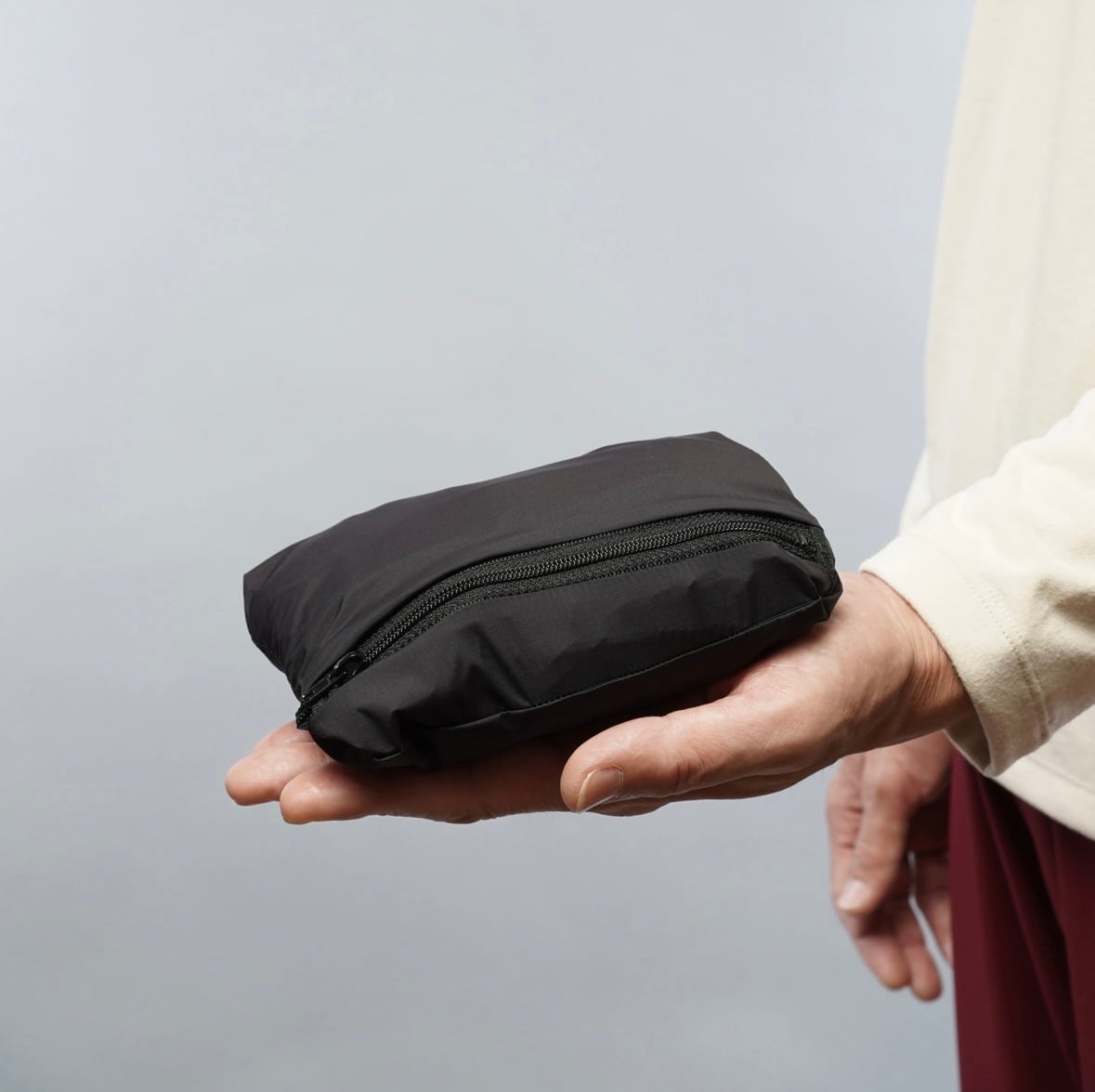◎前面と側面は経糸に13dの極細糸、緯糸に30dのNYPUを使用することで「46g/m2」の優れた軽量性と高い防風性、伸縮性を持たせた『KAJIf』のストレッチリップストップナイロンを採用