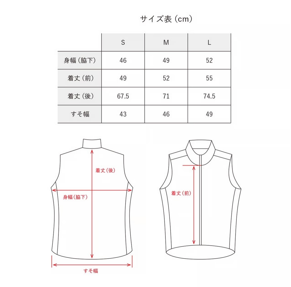 Lサイズ/身幅(脇下):52cm、着丈(前):55cm、着丈(後):74.5cm、すそ幅:49cm、重量:約115g