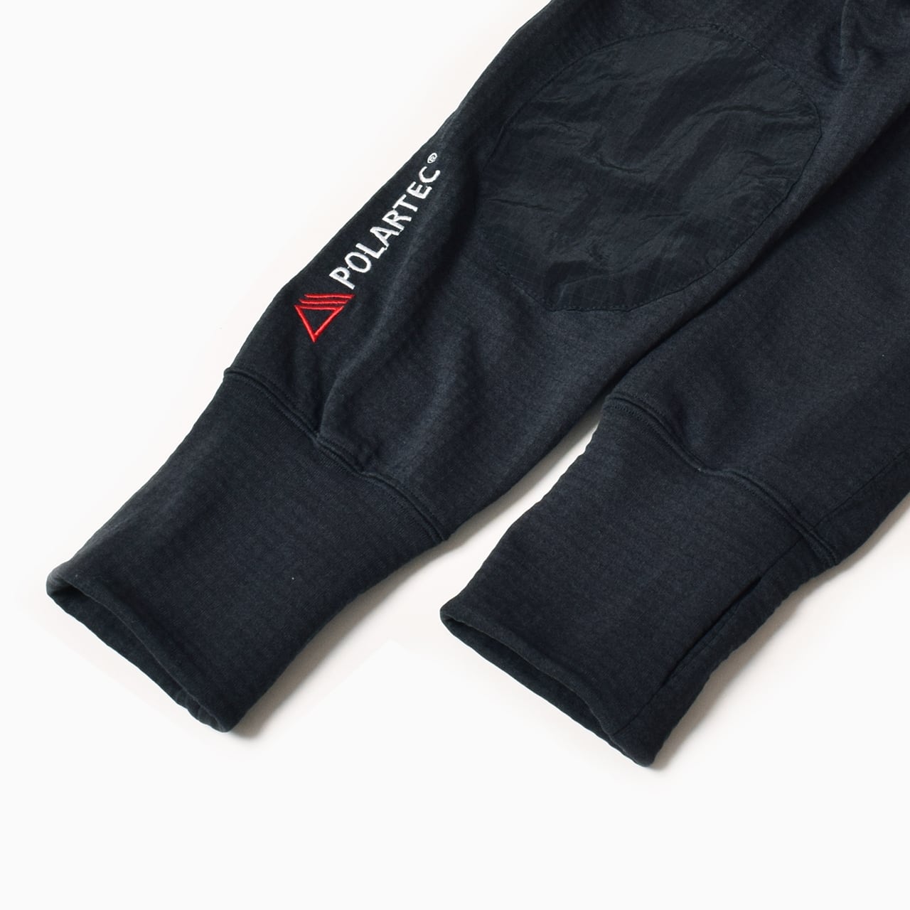 本体素材は、アウトドアシーンで高い信頼を誇る「POLARTEC® Power Grid」。グリッド状の素材感が特徴的な特許取得済みの二重構造のテクニカルフリース。肌に触れる内側は、汗を外側へ拡散して効率的に蒸発させる速乾性を持ち、グリッド構造のオープンエアーチャネル部分が通気性を高めることで、保温性と通気性を両立させている。