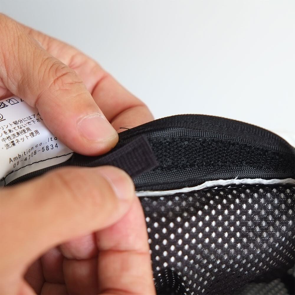 また内側汗止め部分にはベルクロでサイズ調整も可能です。