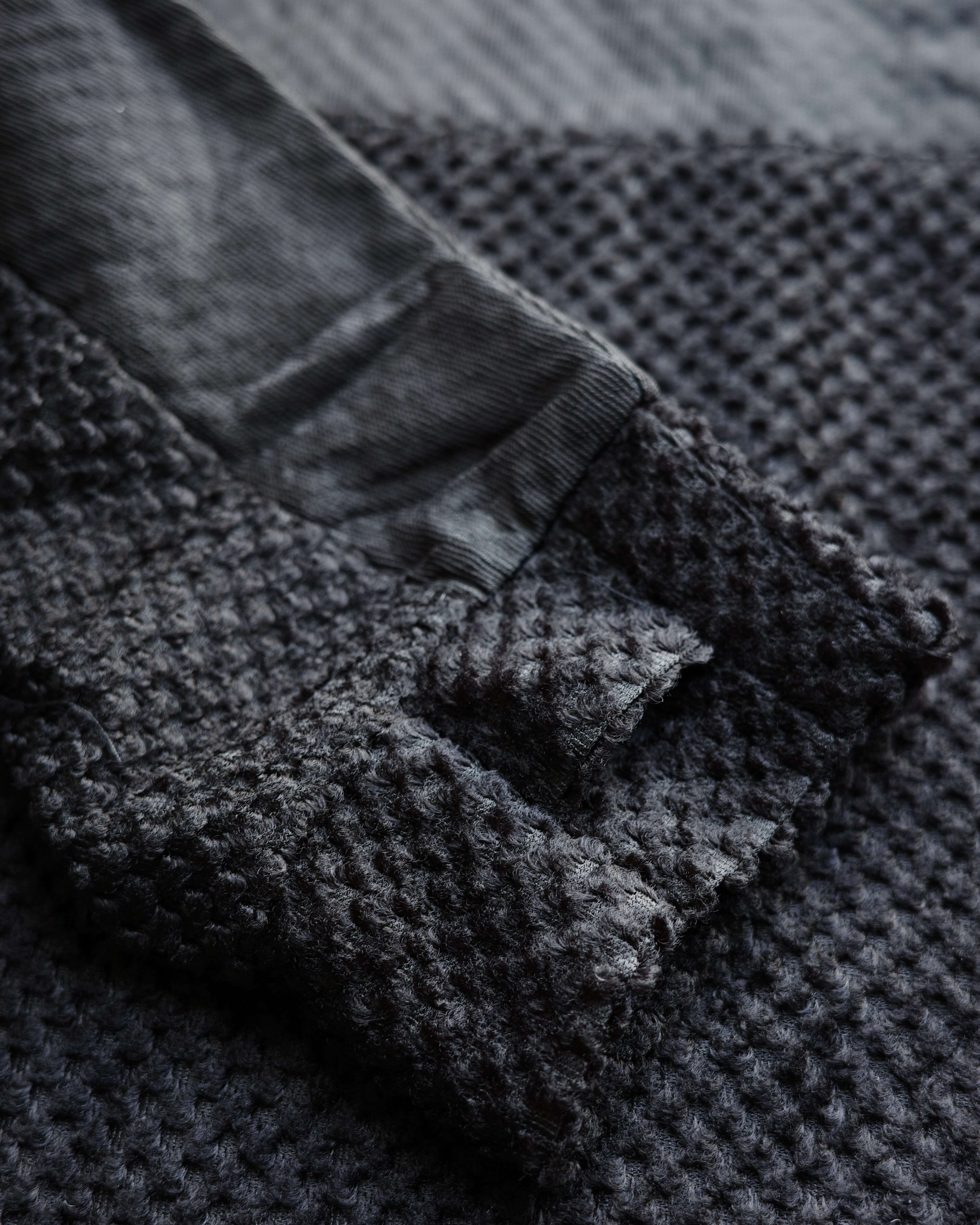 野暮ったい雰囲気の当素材を起毛面、フラット面の表裏使いすることでバイカラー風に。