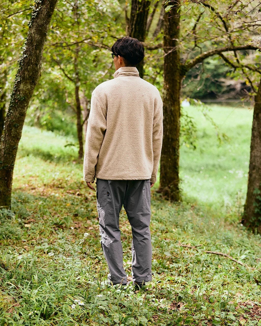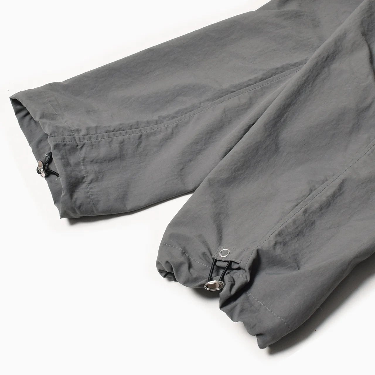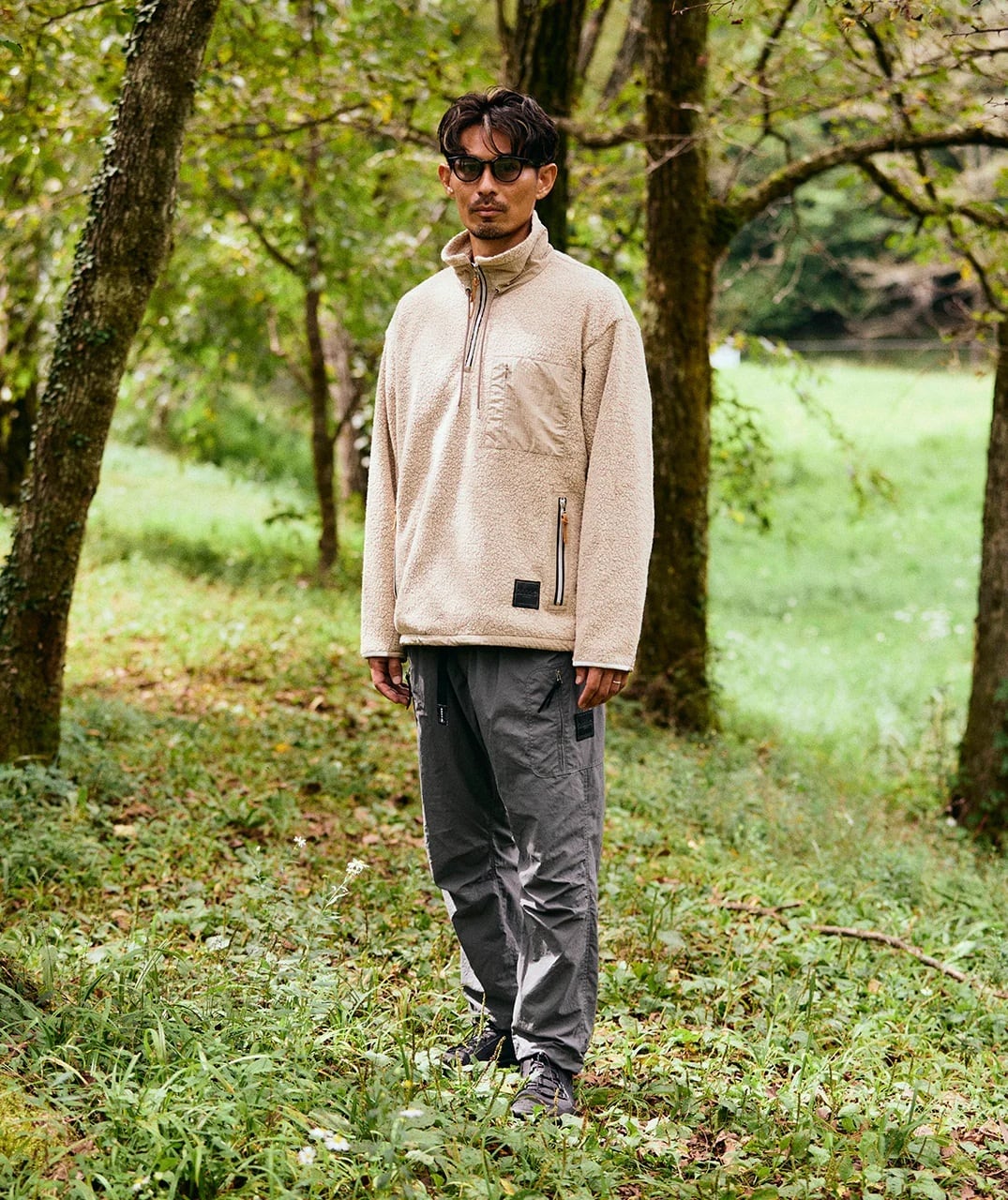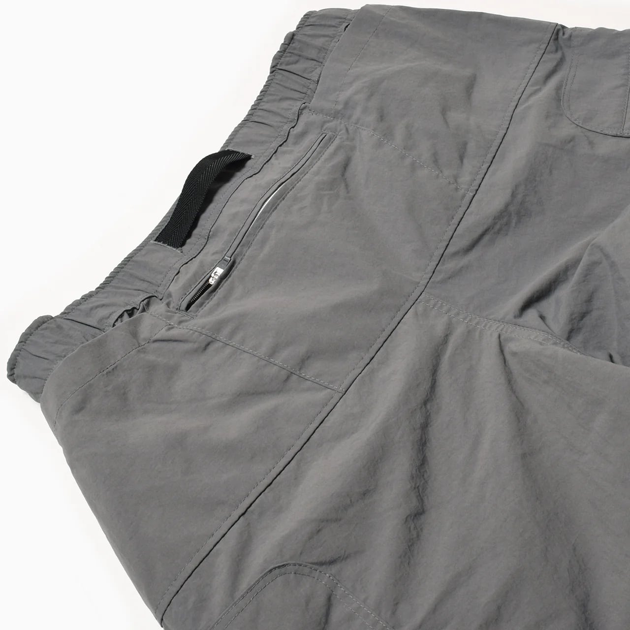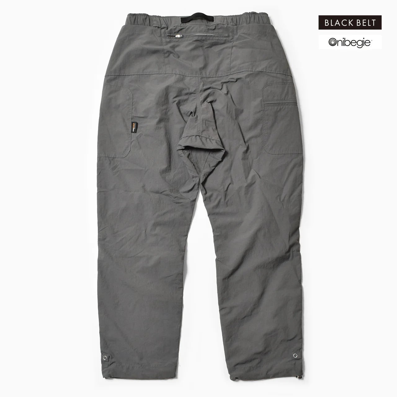 日本製のオリジナルボディは、クライミングパンツをベースにヒップとワタリに余裕を持たせ、裾に向かいテーパードするシルエット。フロントポケット、背部三連ポケット、左右アシンメトリーの脚部カーゴポケット、合計7つのポケットを備える。様々なサイズと形状のポケットは、手ブラで外出できる高い収納力を持つ。ウエストはウェビングベルト+ゴム、裾はドローコードでフィット感を調整可能。