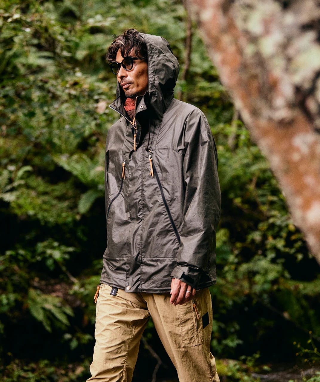 日本製のオリジナルボディは、身幅にゆとりを持たせレイヤリングしやすいナチュラルシルエット。特徴的なフロントの大型ファスナーは、ポケットとベンチレーションを兼ね、開閉することで蒸れや体温を調整することができる。ポケット裏は漁猟の網をリサイクルした「REAMIDE」メッシュを使用。フード形状は立体的なパターンにより風雨をシャットアウト。