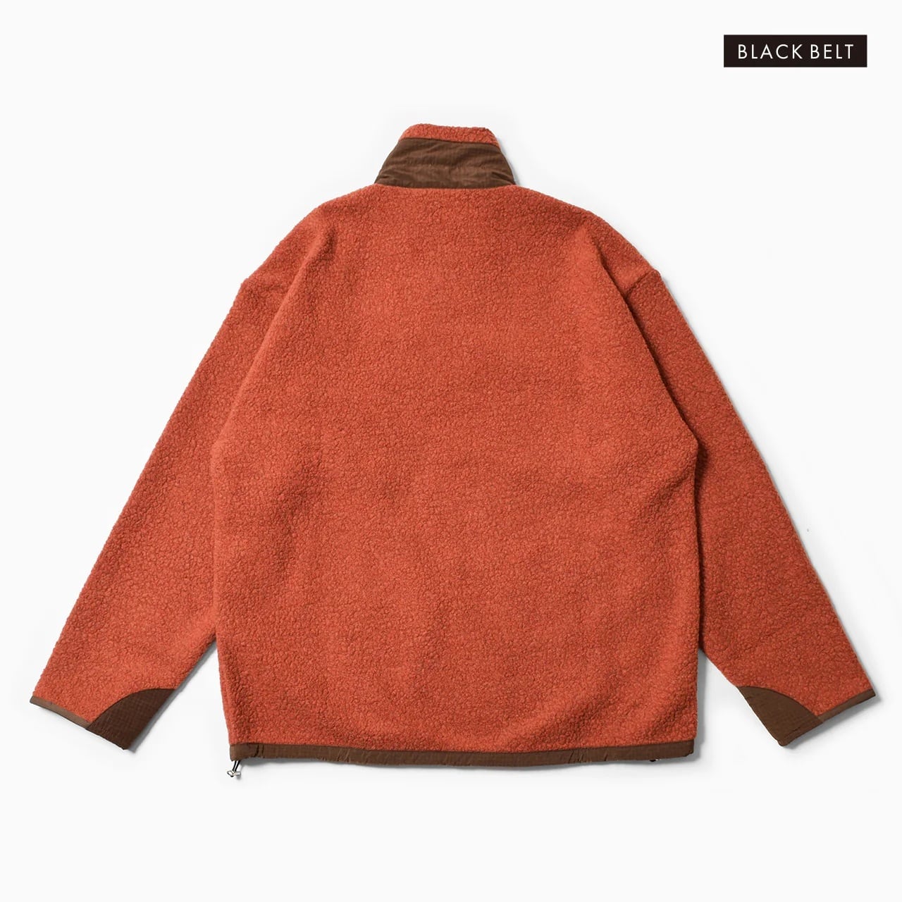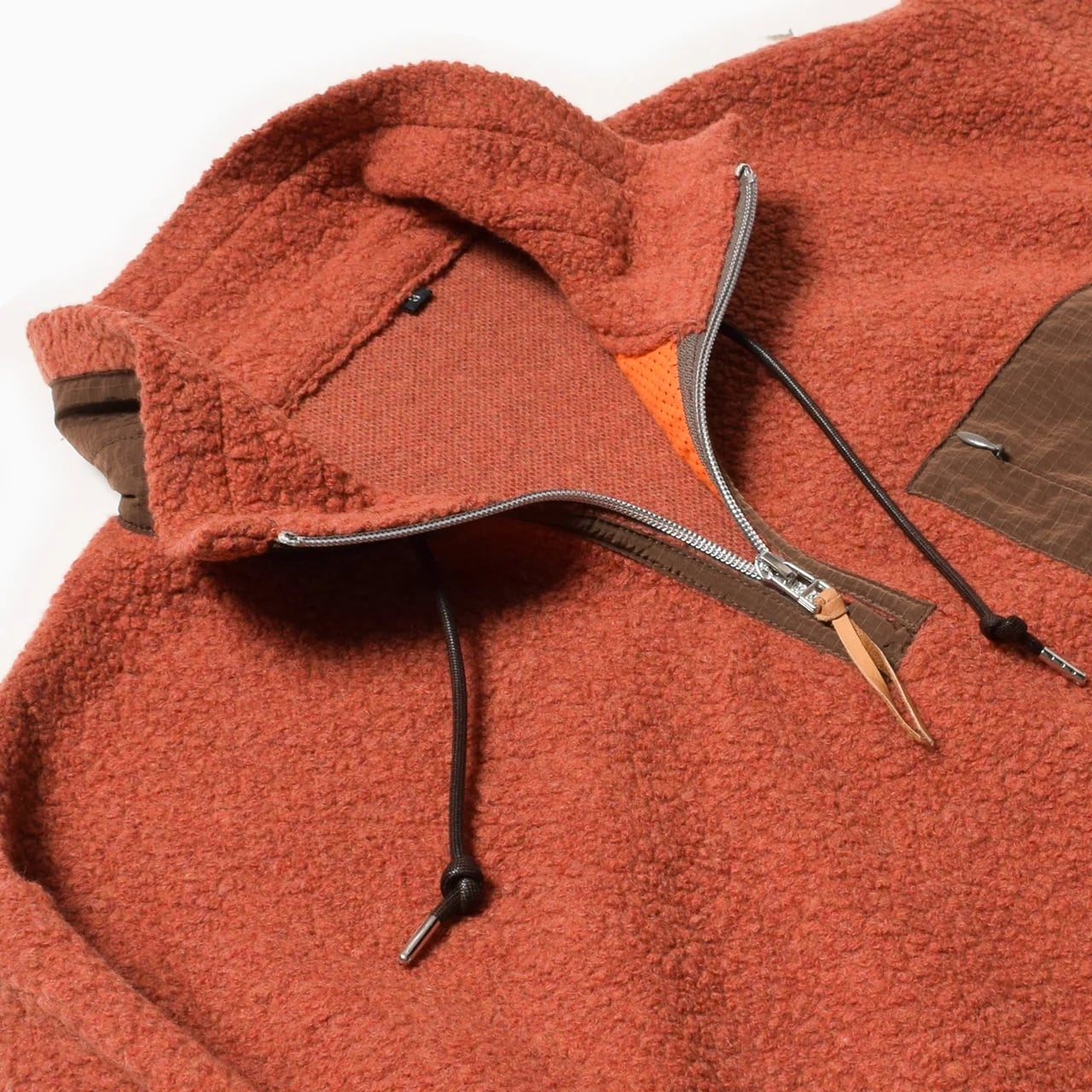 伝統的な繊維業の街、イタリア北西部のプラートで150年以上リサイクルウールを生産している「CALAMAI」社。再生ウールとマイクロ化繊糸を混紡したエアリーなボアフリースを使用したオーセンティックなプルオーバー。