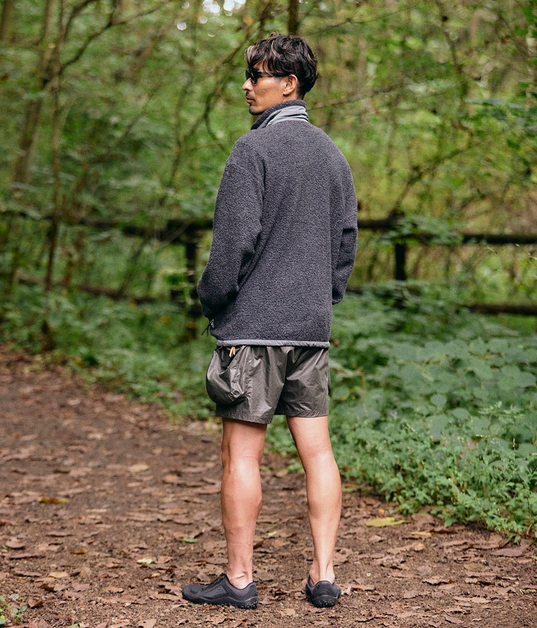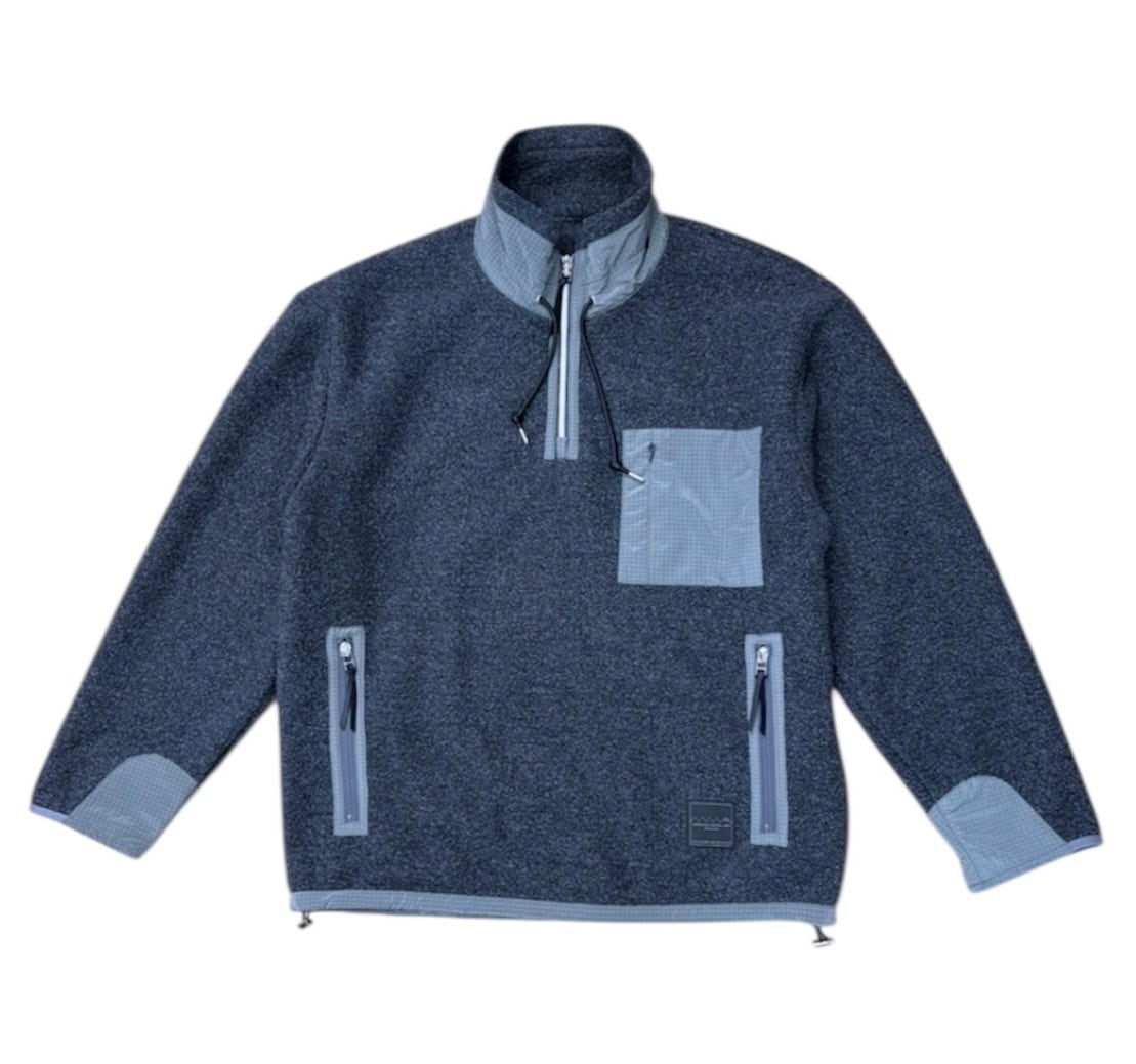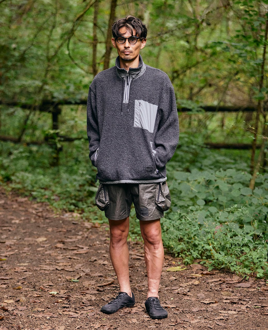日本製のオリジナルボディは、肩幅と身幅にゆとりを持たせたリラックスシルエット。胸元のハーフファスナーで体温調節が可能。ファスナーは軽量で高級感のあるメタリックコイルファスナーを使用。襟とポケットカバーと袖先には高強度の撥水モノフィラメントリップストップナイロンを使用することで高い耐久性を持つ。