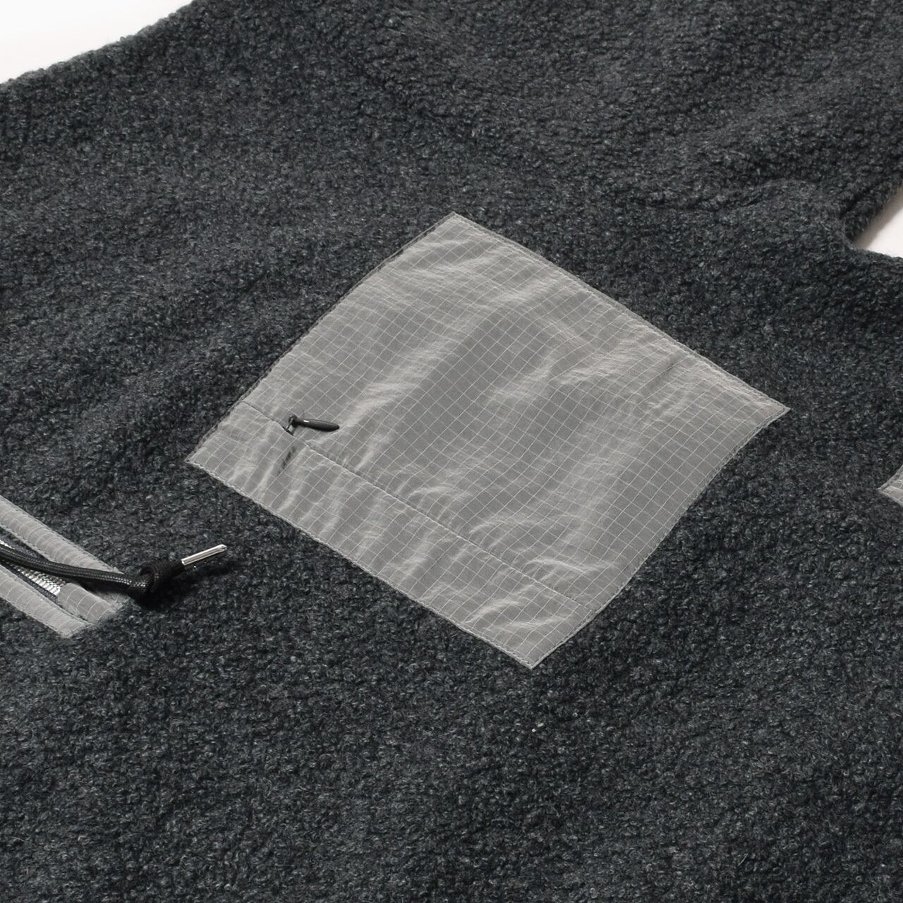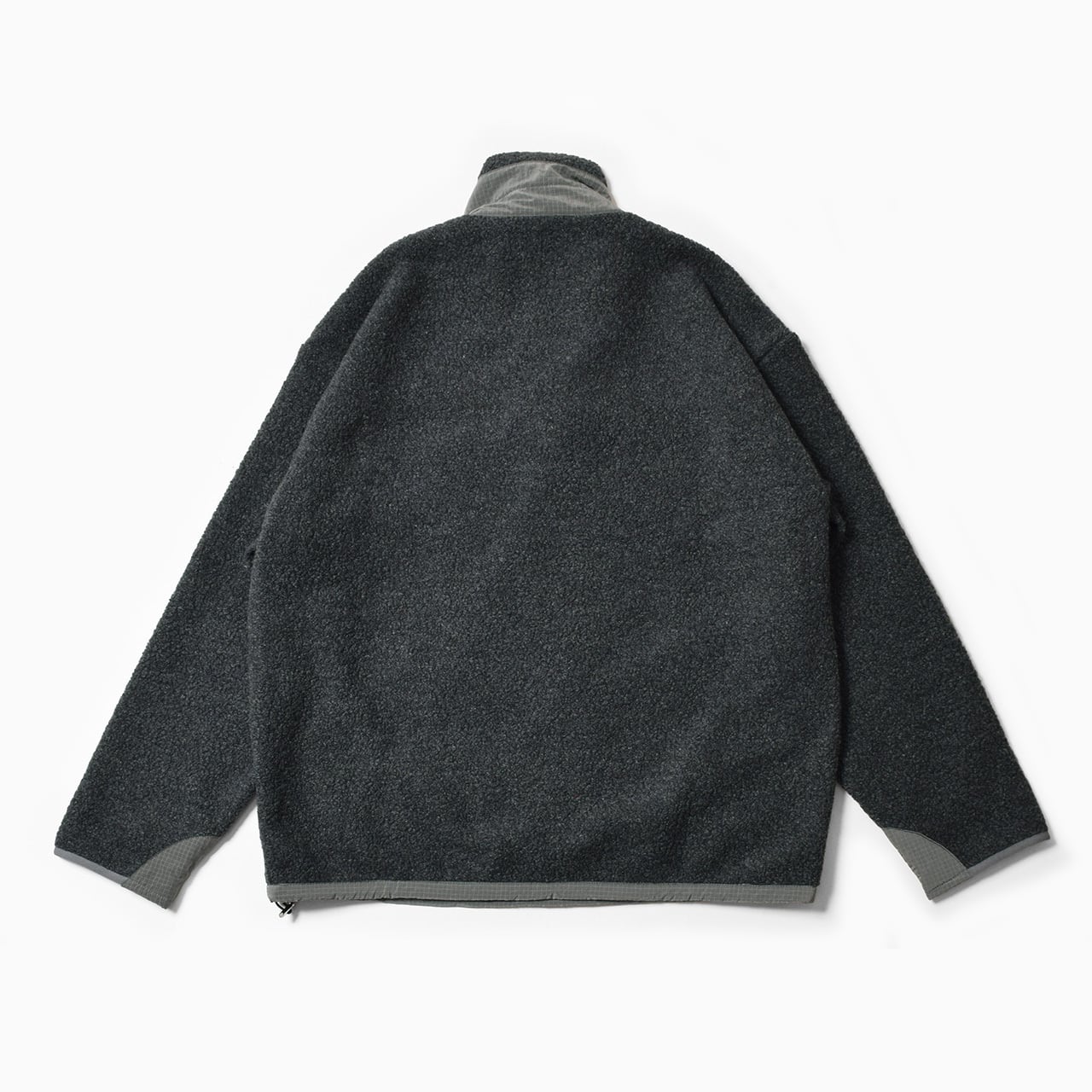 伝統的な繊維業の街、イタリア北西部のプラートで150年以上リサイクルウールを生産している「CALAMAI」社。再生ウールとマイクロ化繊糸を混紡したエアリーなボアフリースを使用したオーセンティックなプルオーバー。