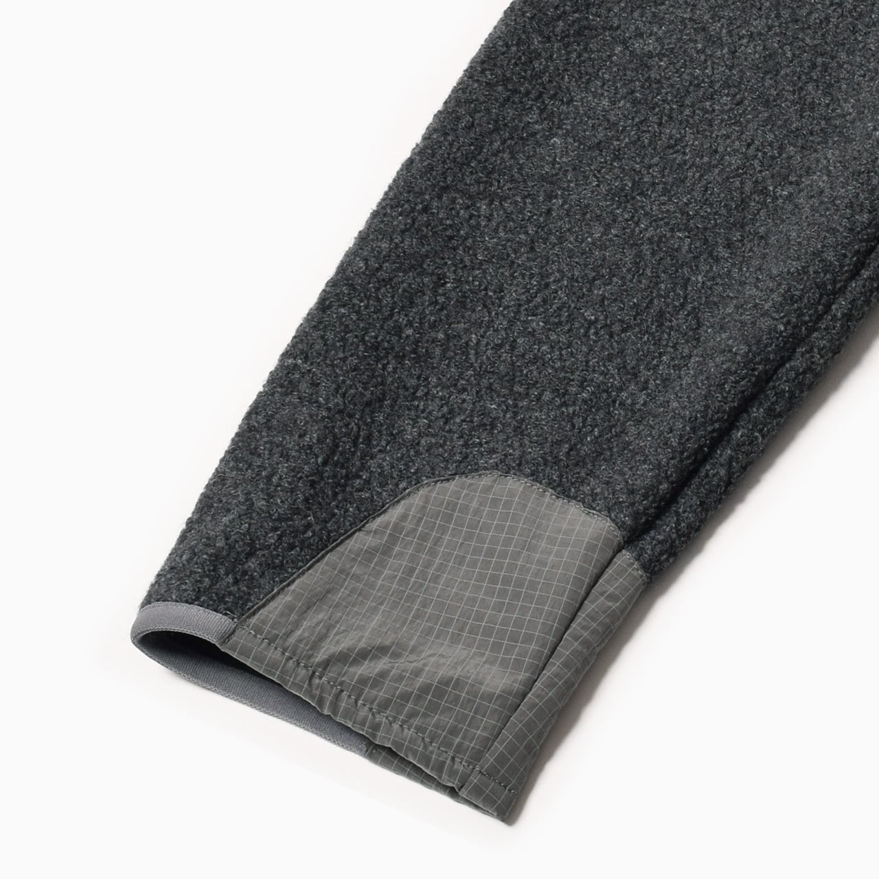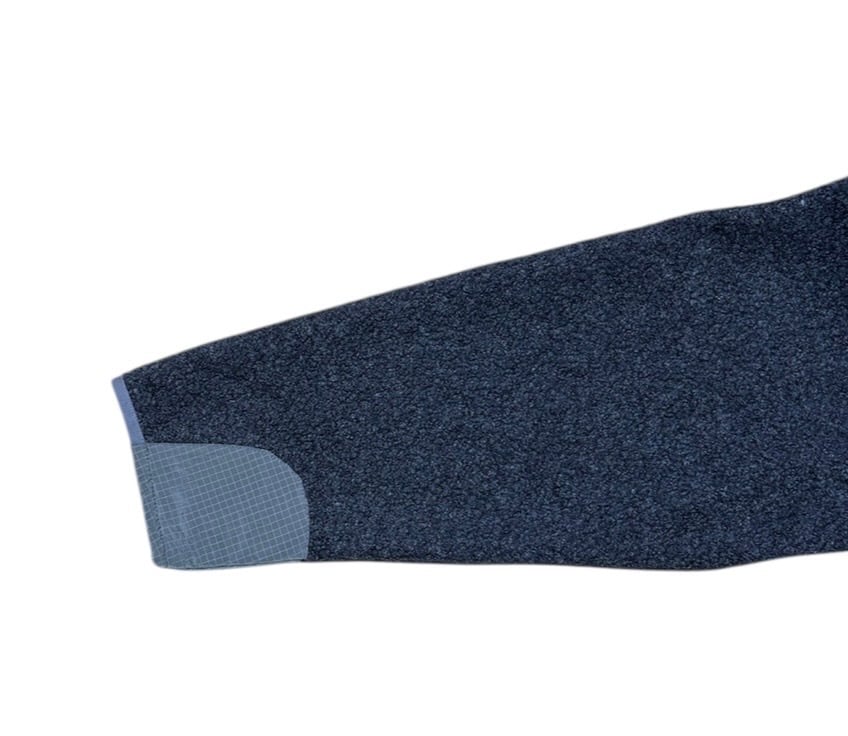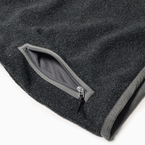 本体素材は、CALAMAI社の再生ウールとマイクロ化繊糸を混紡したエアリーなウールフリースを使用。イタリアならではの発色の良さとソフトな肌触りで、ボリューミーに見えながらも軽量で快適な着心地。ウールの持つ「保温性」「防臭性」に優れ、アクティビティにも対応するウォッシャブル仕様。