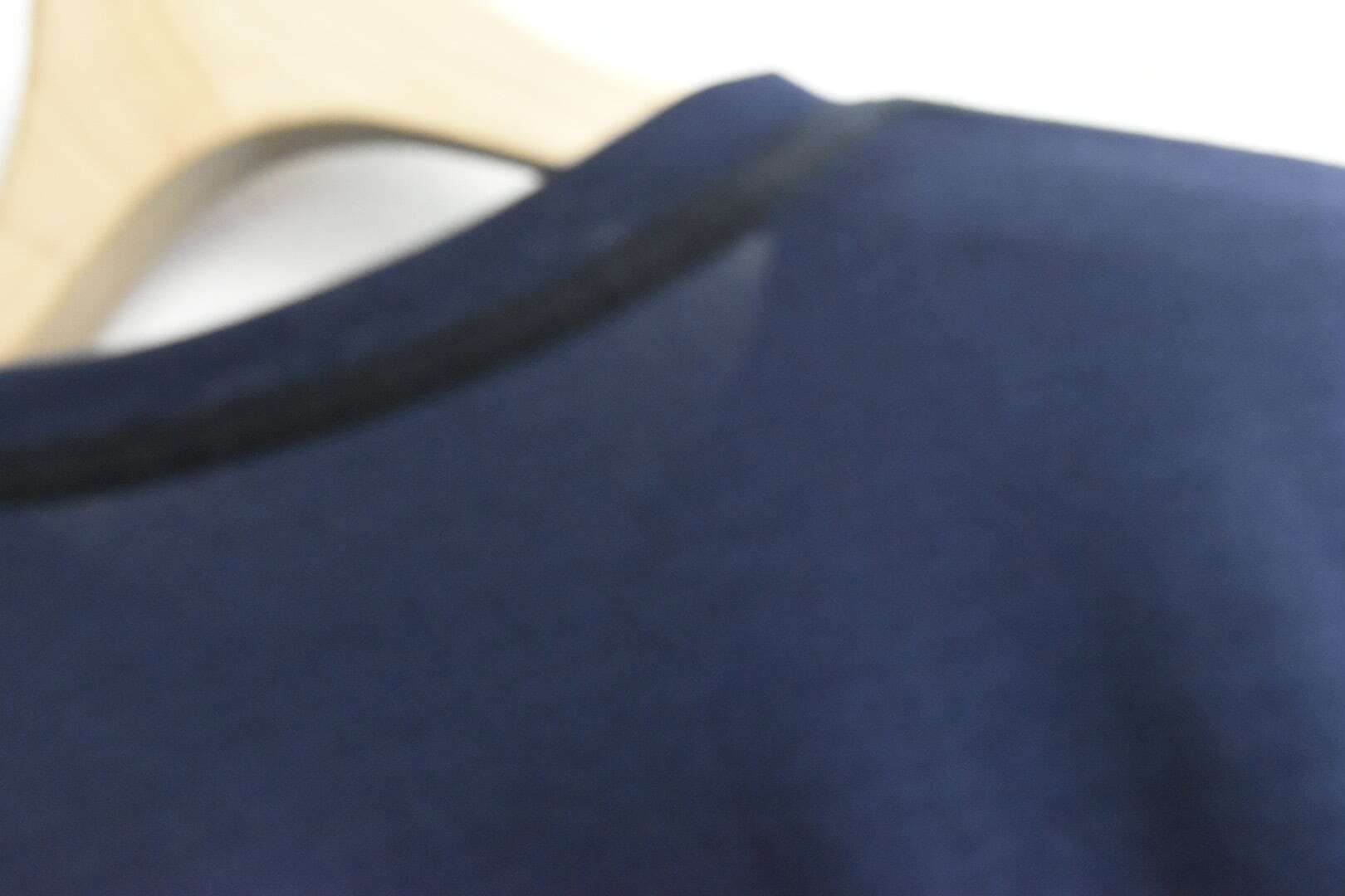 ・首から腕への配色のラインはデザインポイント兼柔らかく伸縮性に富むウール天竺を、伸びす ぎない様に抑えるように仕立てています。