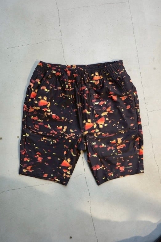ブランドの世界観を一新する、ストリート感溢れるグラフィック〈NIGHT CAMO〉を全面に昇華プリントしたショートタイツ。