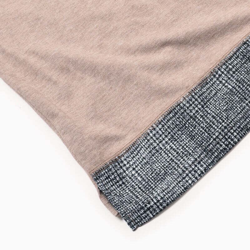 日本製のオリジナルボディは、アクティビティとタウンユースにバランスよくフィットするレギュラーシルエット。裾にはスリットが入り、背面が長いクラシカルなディティール。背面下部はMMAオリジナルプリント生地の残布をアトランダムに切り替えて使用。
