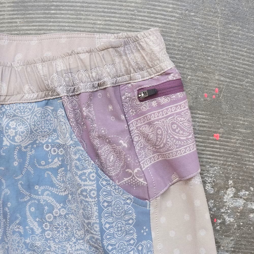 パッチワークをデータ化プリント致しましたバンダナクレイジーミドルショーツです。